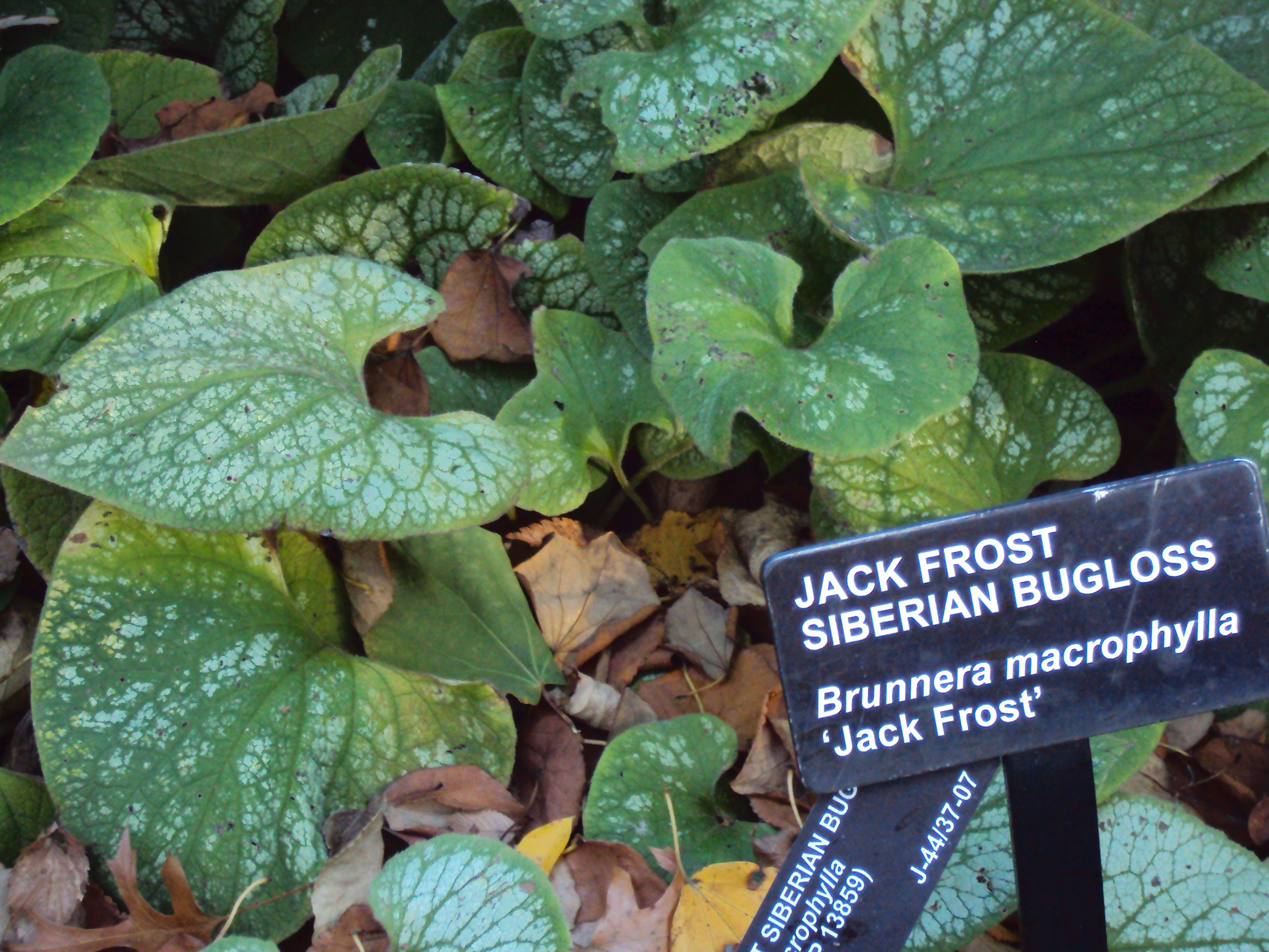 This may also be found as Jack Frost Brunnera.  The scientific name is Brunnera macrophylla ‘Jack Frost’.  The pictures are show this as way may blue than it is. The next photo is a bit more realistic.