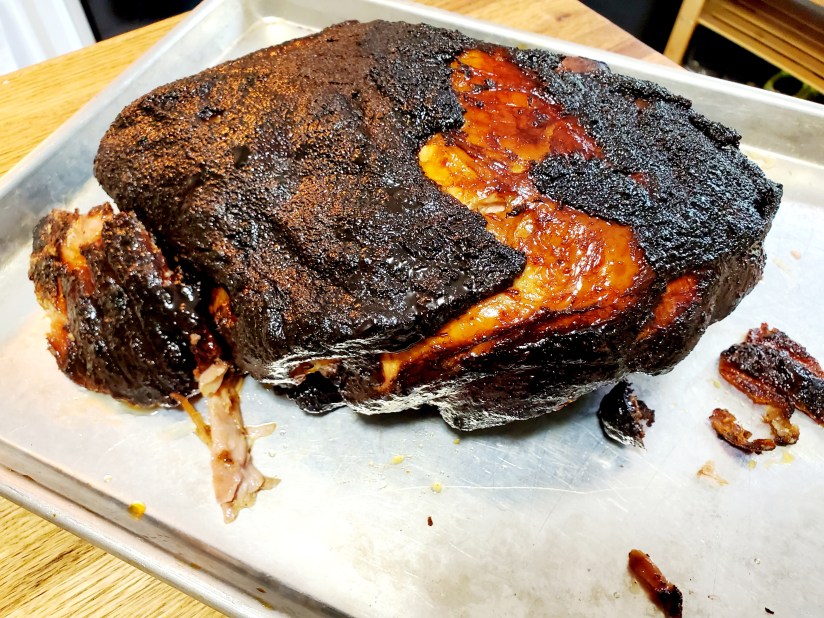 I can’t help but share that, because well smoked pulled pork! Since nearly 16 lbs of pork butt means there’s two in the package, we decided to experiment a bit, and I still have a learning curve, but it’s a fun one. This first one we did in our vertical smoker and it got done way early, as in it went on at 5:15 am and was done around 2:30 pm. The other one went on our new pellet grill/smoker and we ran into a few snags with flame outs and this second one didn’t come out until about 9:30 pm. The bark on the first one was better, but the smoke ring on the second was impressive. Definitely going to try this again and going to make a few changes to how this goes on the pellet grill. Regardless, but came out fabulous in their own way.
